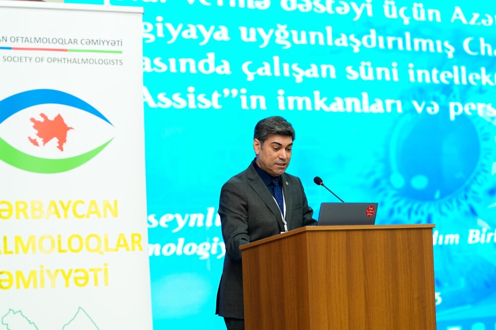 Konfransın diqqət çəkən məruzələrindən biri Müasir Oftalmologiyanın İnkişafına Yardım Birliyinin sədri Dr. Emin Əlihüseynli tərəfindən təqdim olunub. O, “Klinik qərar vermə dəstəyi üçün Azərbaycan dilli terminologiyaya uyğunlaşdırılmış ChatGPT 5.0 modeli əsasında çalışan süni intellekt aləti olan “OftalmoAssist”in imkanları və perspektivləri” adlı məruzə ilə çıxış edib.